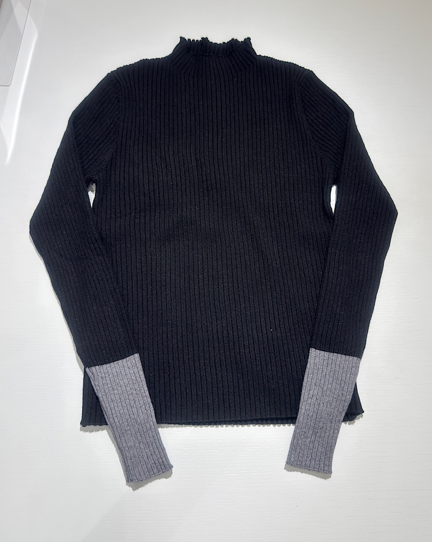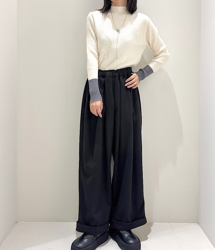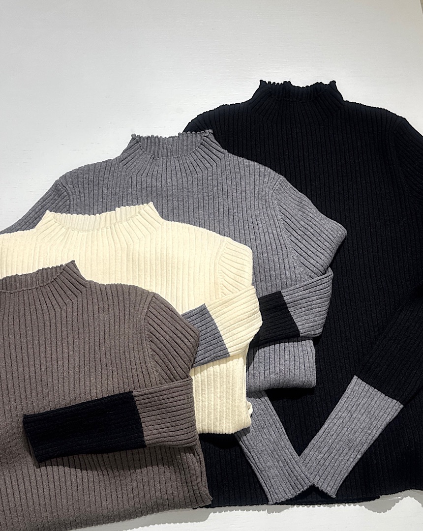 袖バイカラーニットプルオーバー