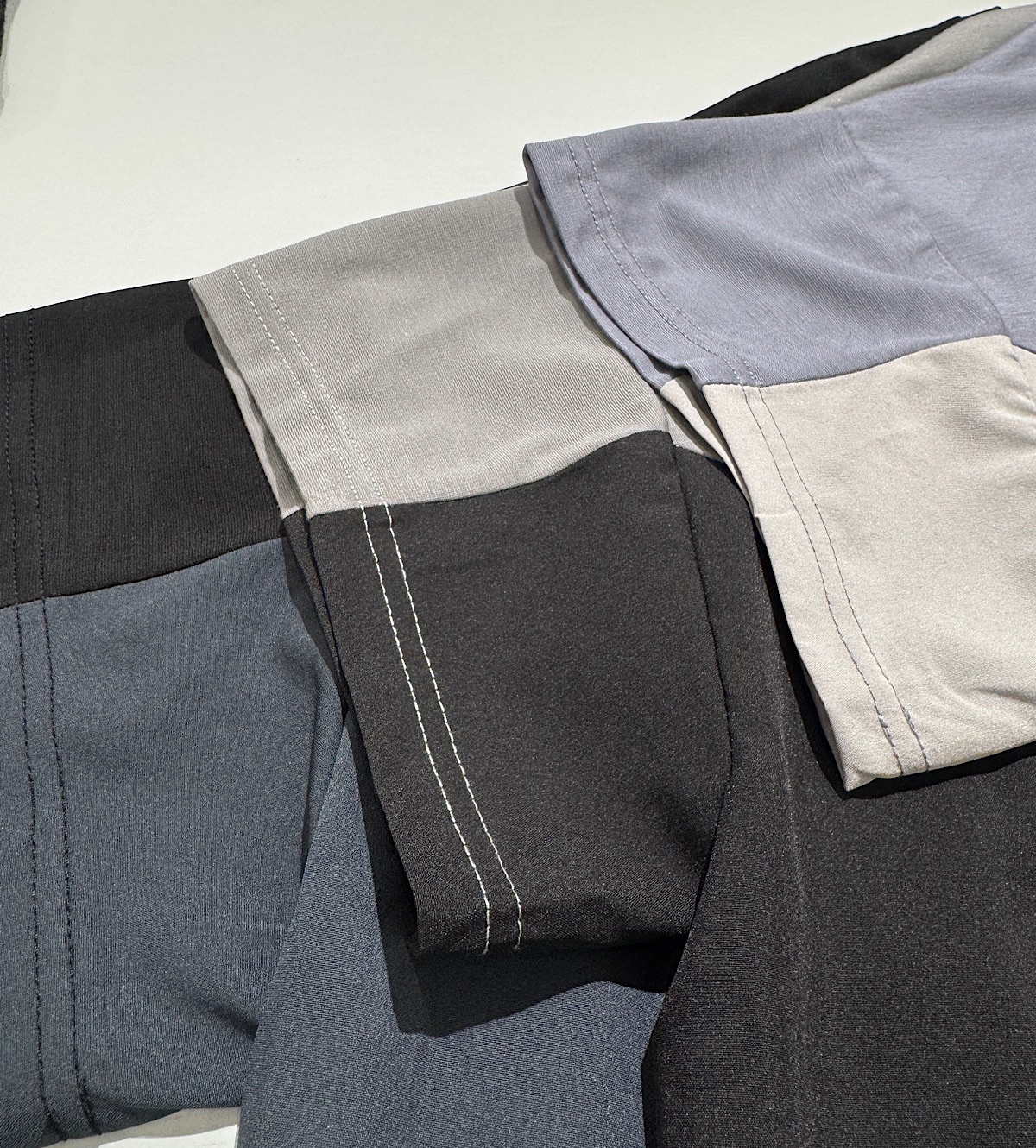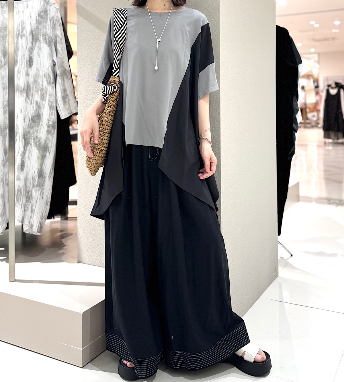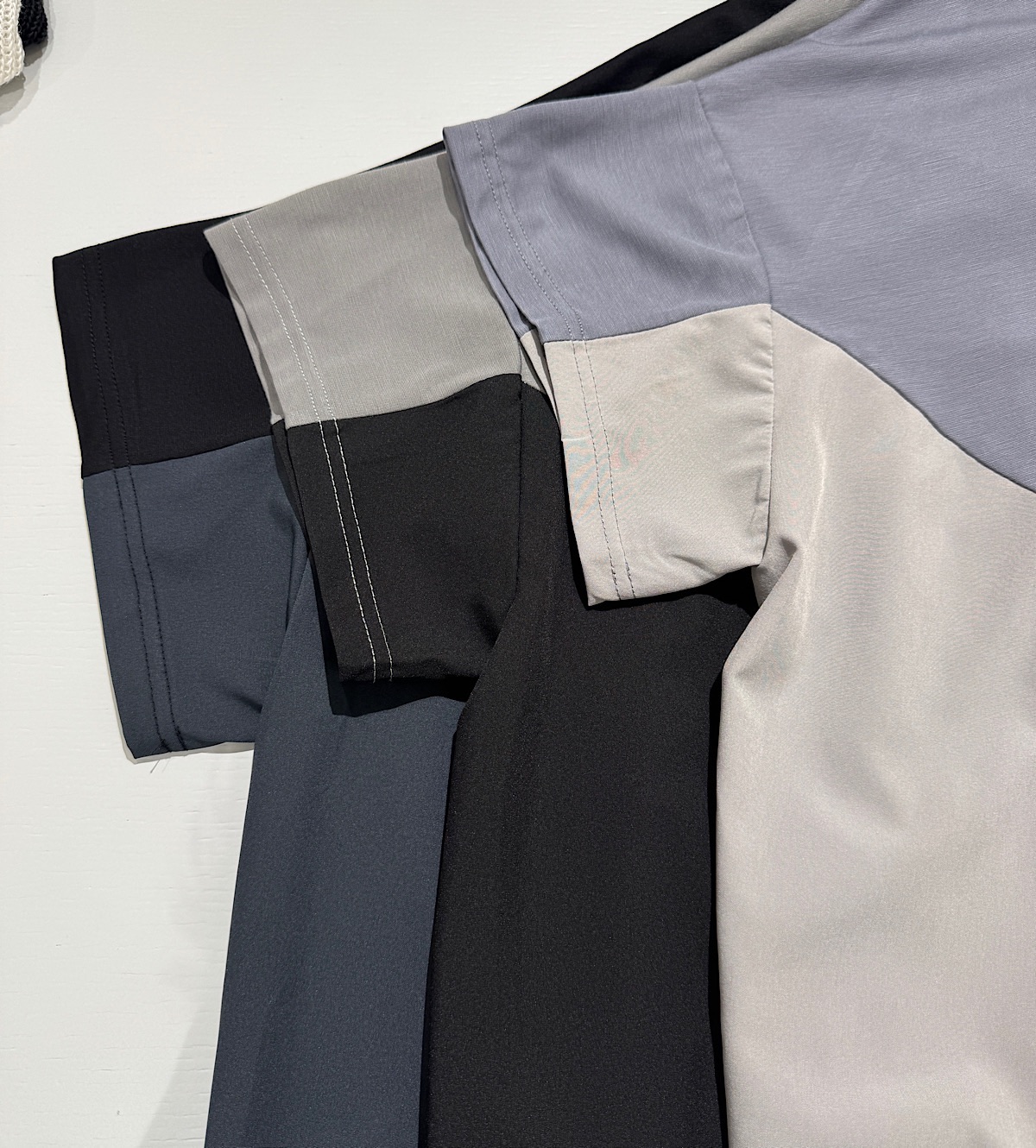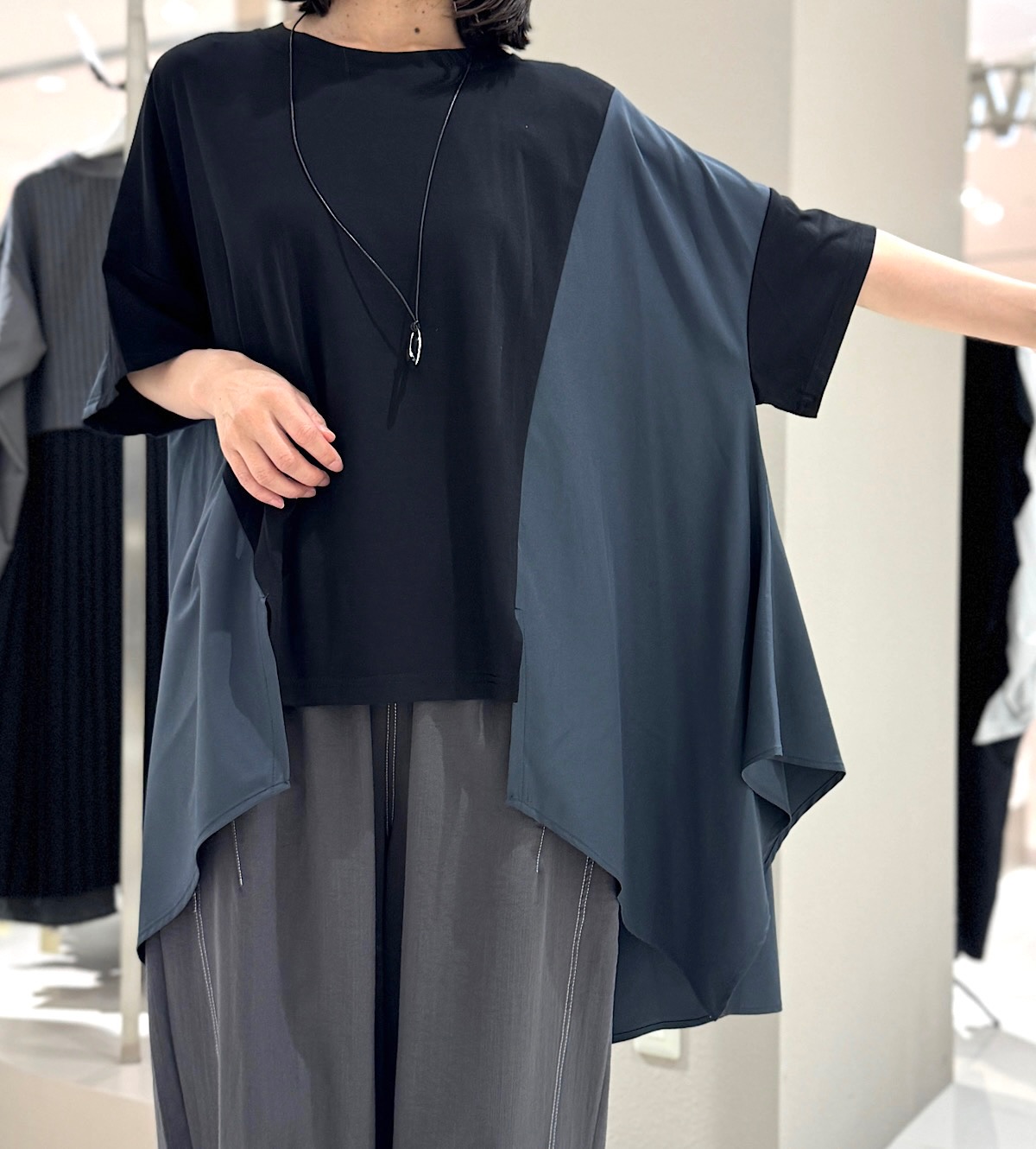 さらさらした清涼感のあるカットソー×エアリーで軽いポリエステル素材のドッキングデザインです。