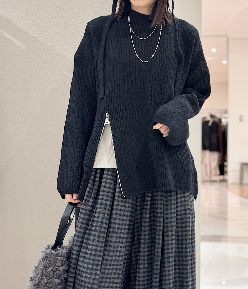 裾のジップは開け閉めができて、インナーをチラ見せしたりしてアレンジができるのが楽しい。お気に入りのインナーを合わせて、カラーコーデも楽しみたい。