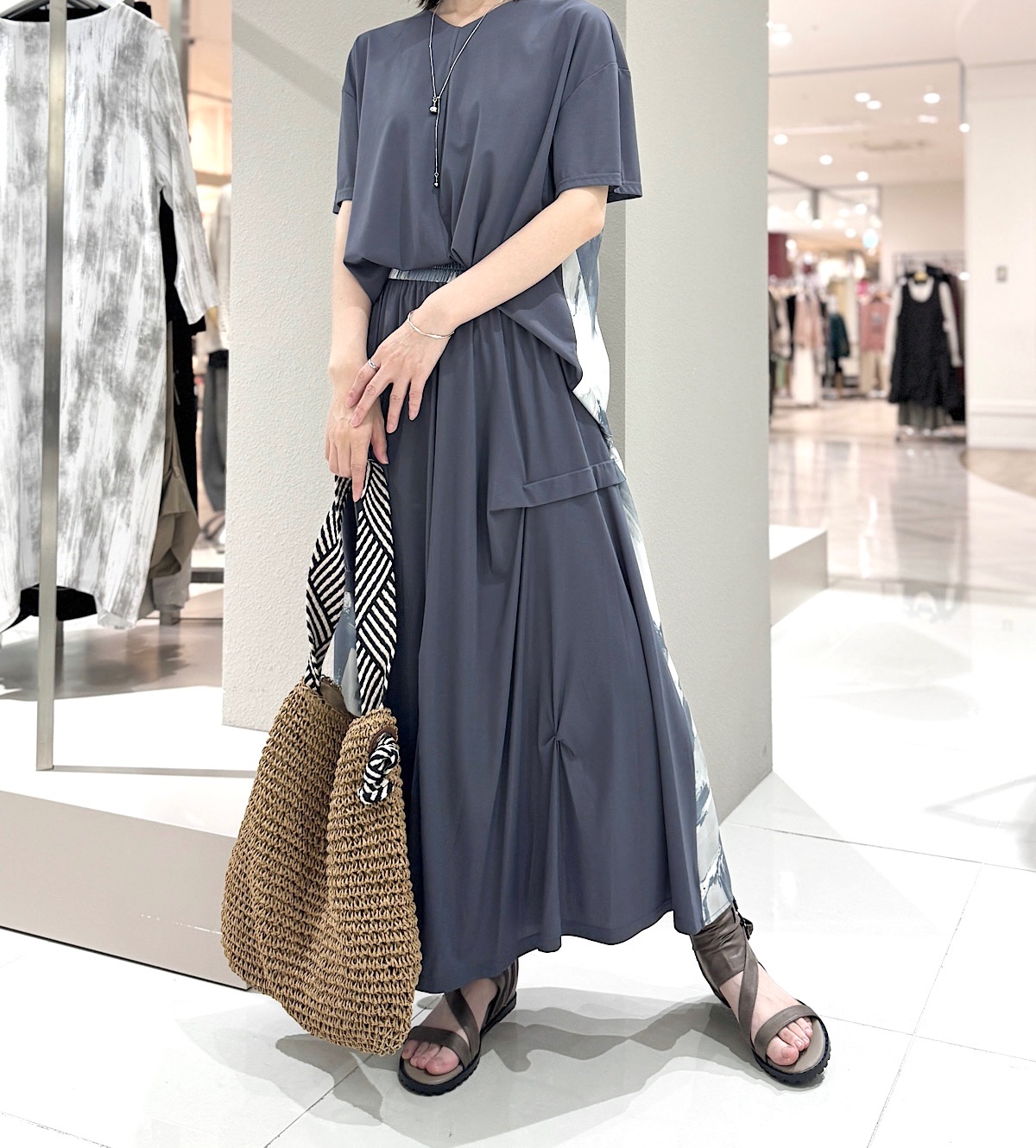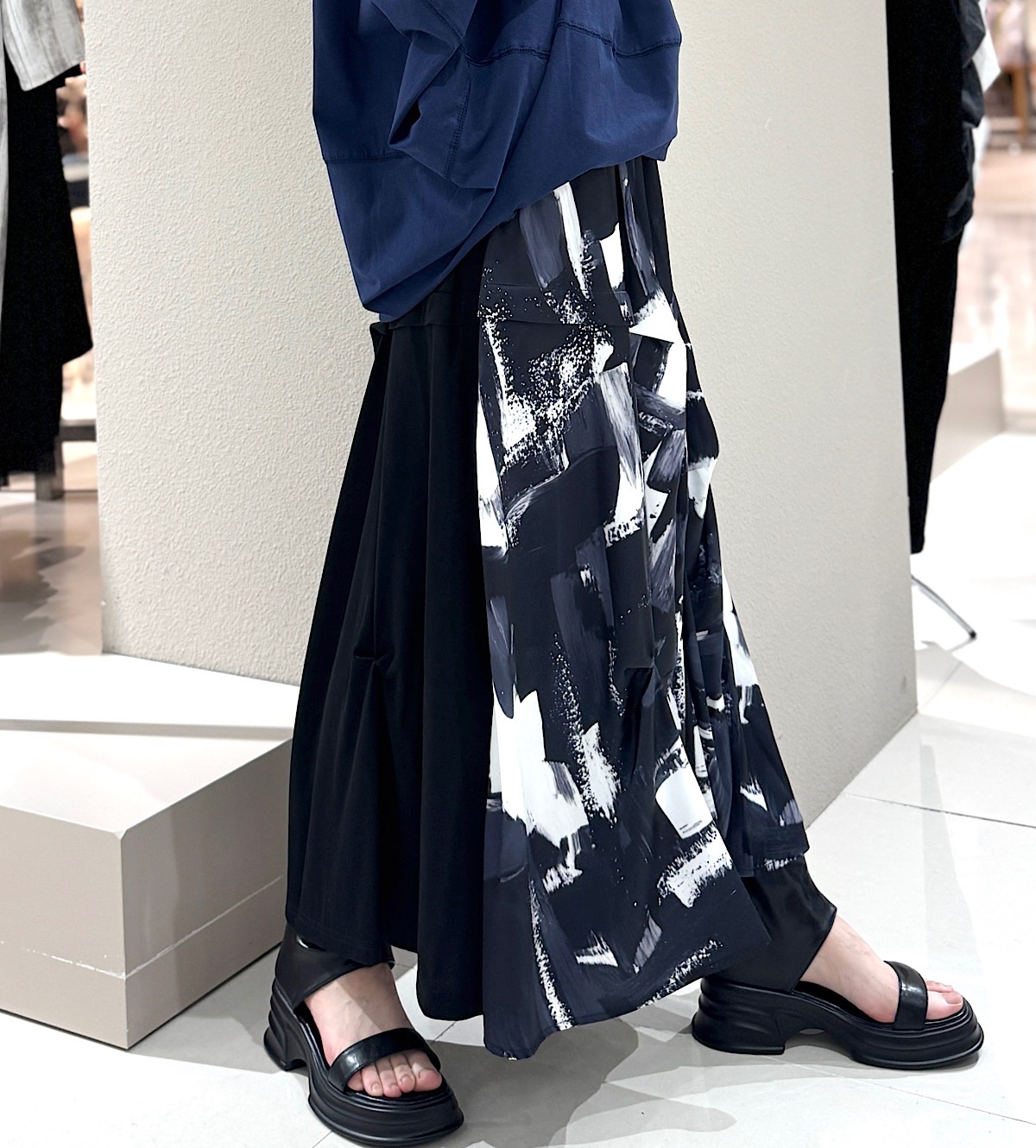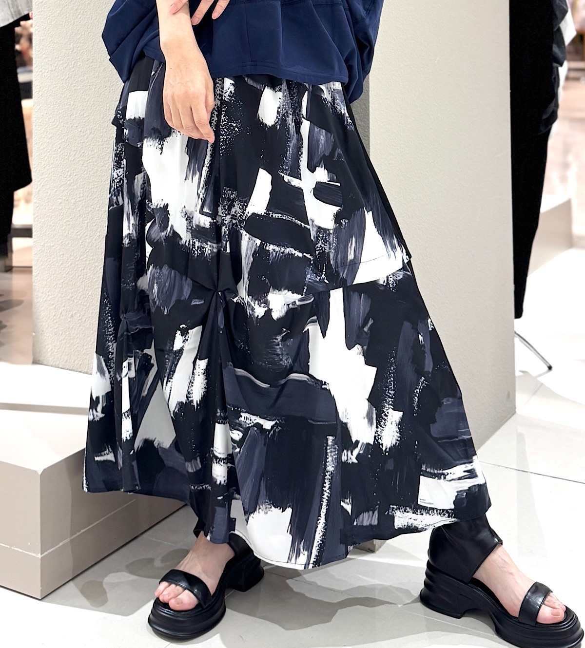 プリント無地切替スカート