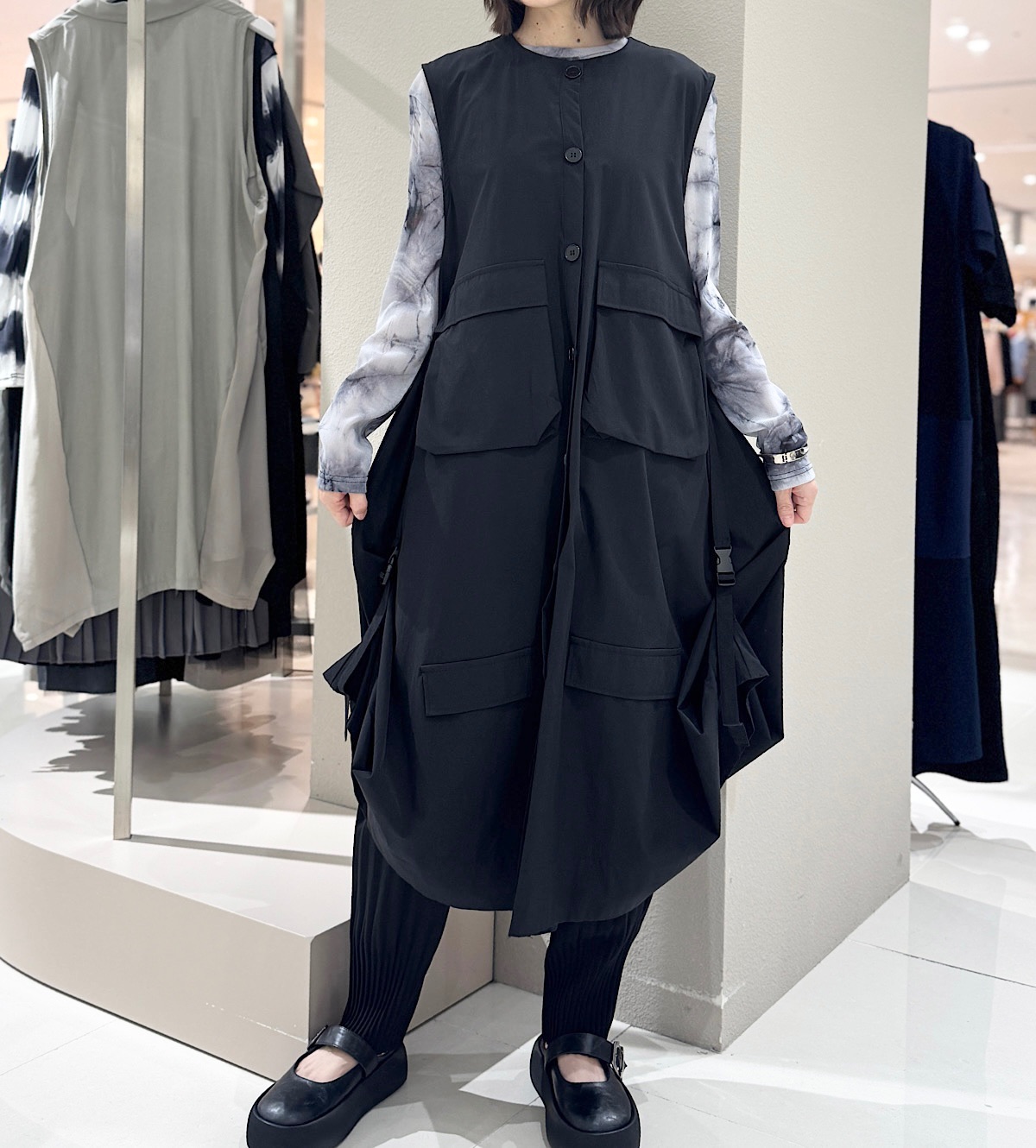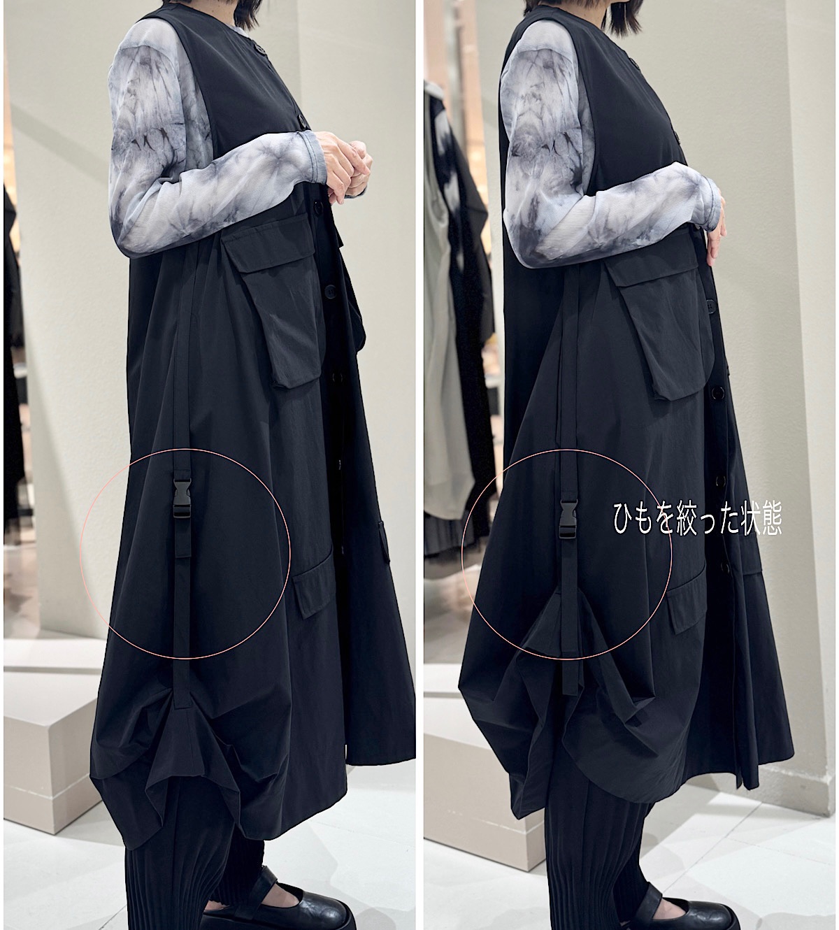 Aラインシルエットでジャンスカのようにも羽織っても着られる2WAYワンピース。