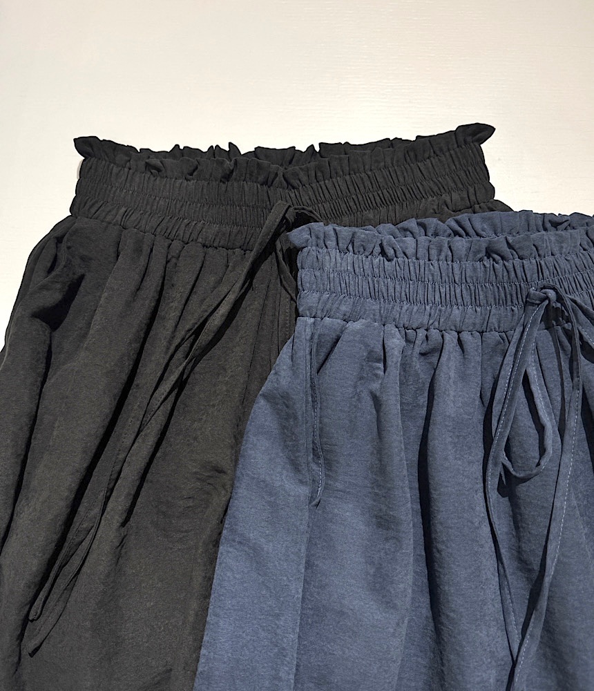 【ウエスト総ゴム・裏地なし・ポケットあり】
