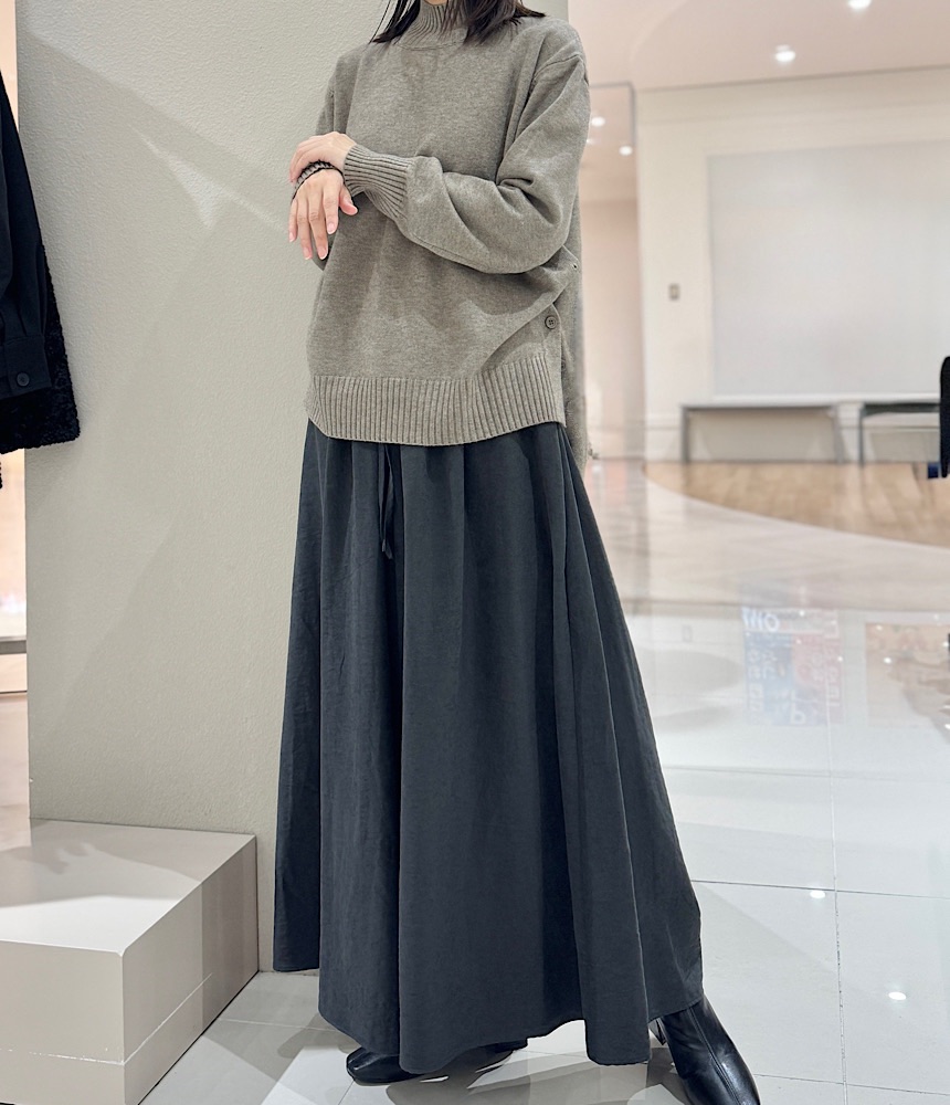 オッズオンコンプレックス定番のワイドパンツ。パンツ幅がかなりワイドでフレアーなシルエットはまるでスカートのよう。