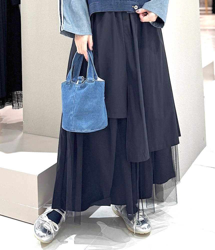 チュールに目がいきがちですが、実は布が重なって奥行きのあるデザインのレイヤードパンツ。