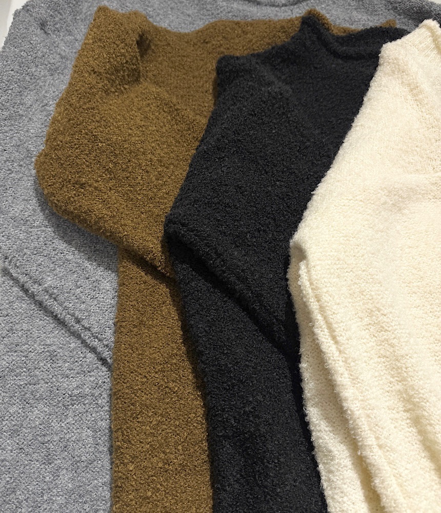 ふわふわとしたニットが心地よいブークレニット。軽くて見た目にも温かみがあり寒い冬にぴったり!