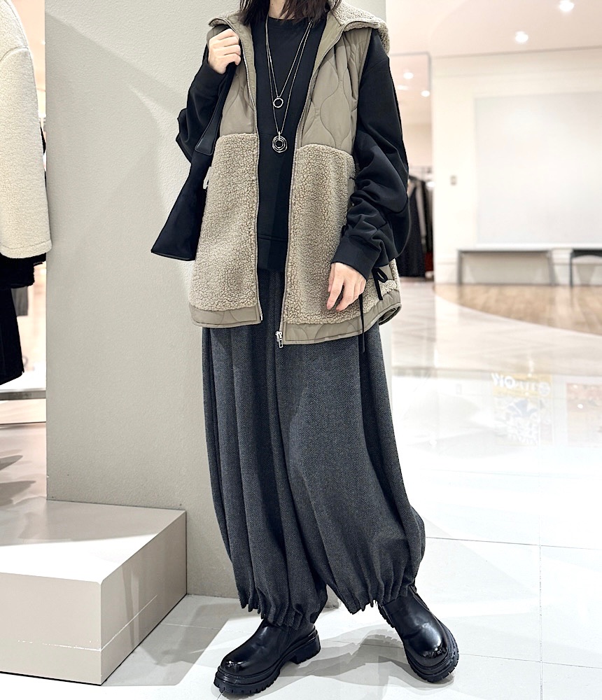 温かいフリースのような素材で、冬から春にかけて長く活躍する一着です。