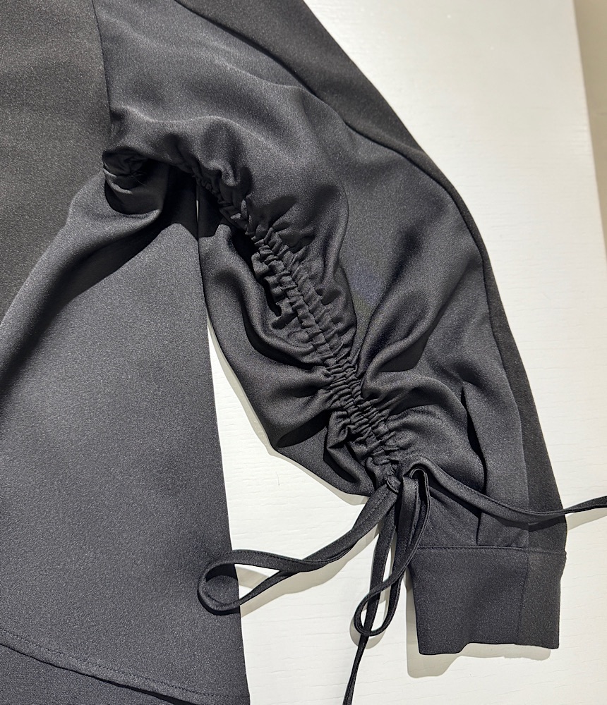 袖には縦に絞れる紐がついていて、たっぷりギャザーを入れて着ることができます。