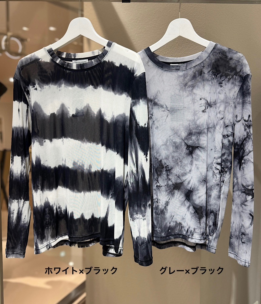 シンプルな長袖に1点1点違うタイダイプリントをのせました。