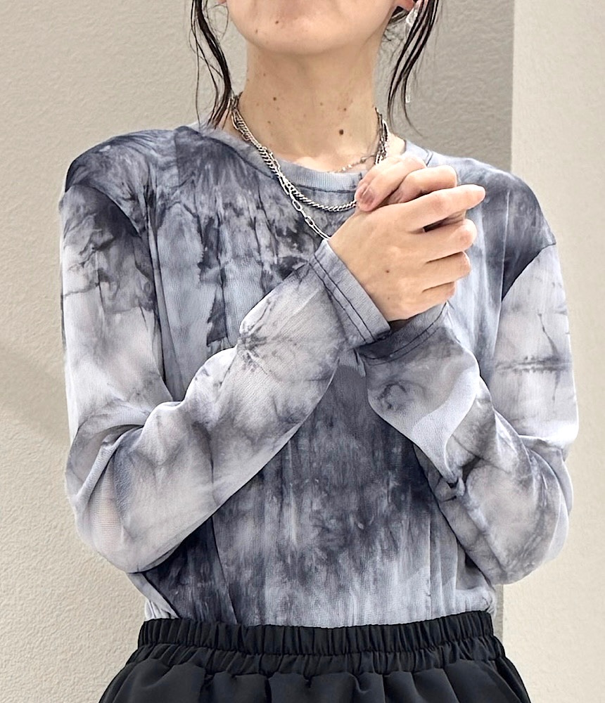 素材は伸びが良くやや透け感のある素材。透け感があるからこそ、タイダイの色合いが深みと透明感があって◎。