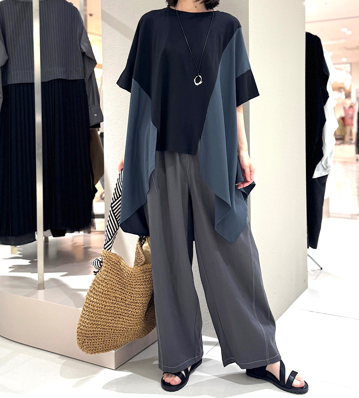 ステッチ使いカーブパンツ