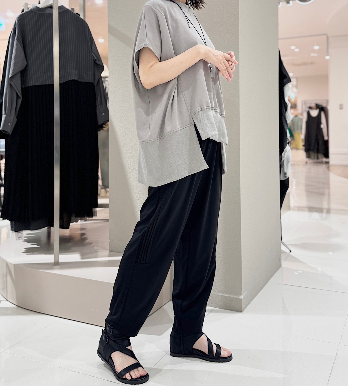 サイドピンタックテーパードパンツ