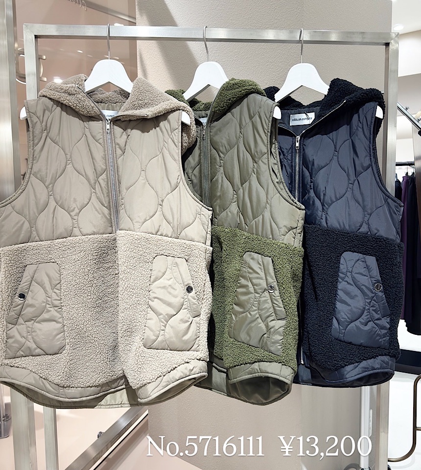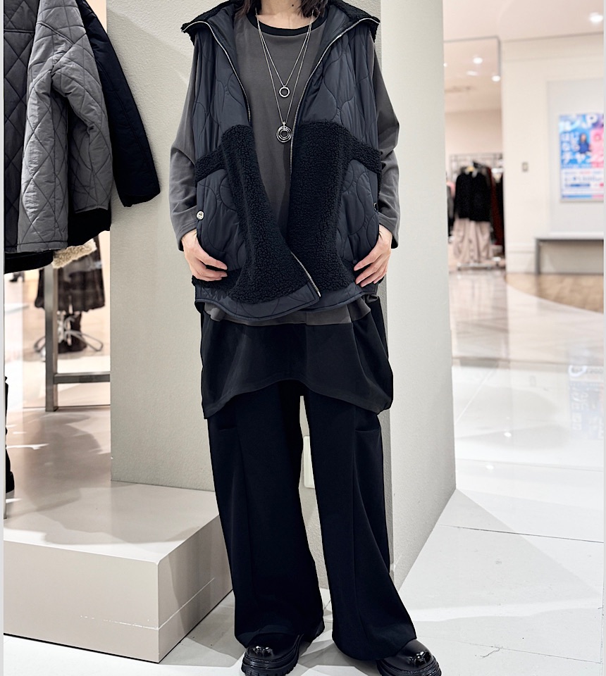 あたたかくて軽い、定番で着回しのきく中綿キルティングのベスト。ダウンベストよりもボリューム抑えめでスッキリとしていて、丈も長いのが嬉しいポイント。脇ぐりはゆったりしているので、袖のゆったりした服の上にも楽に重ねることができます。