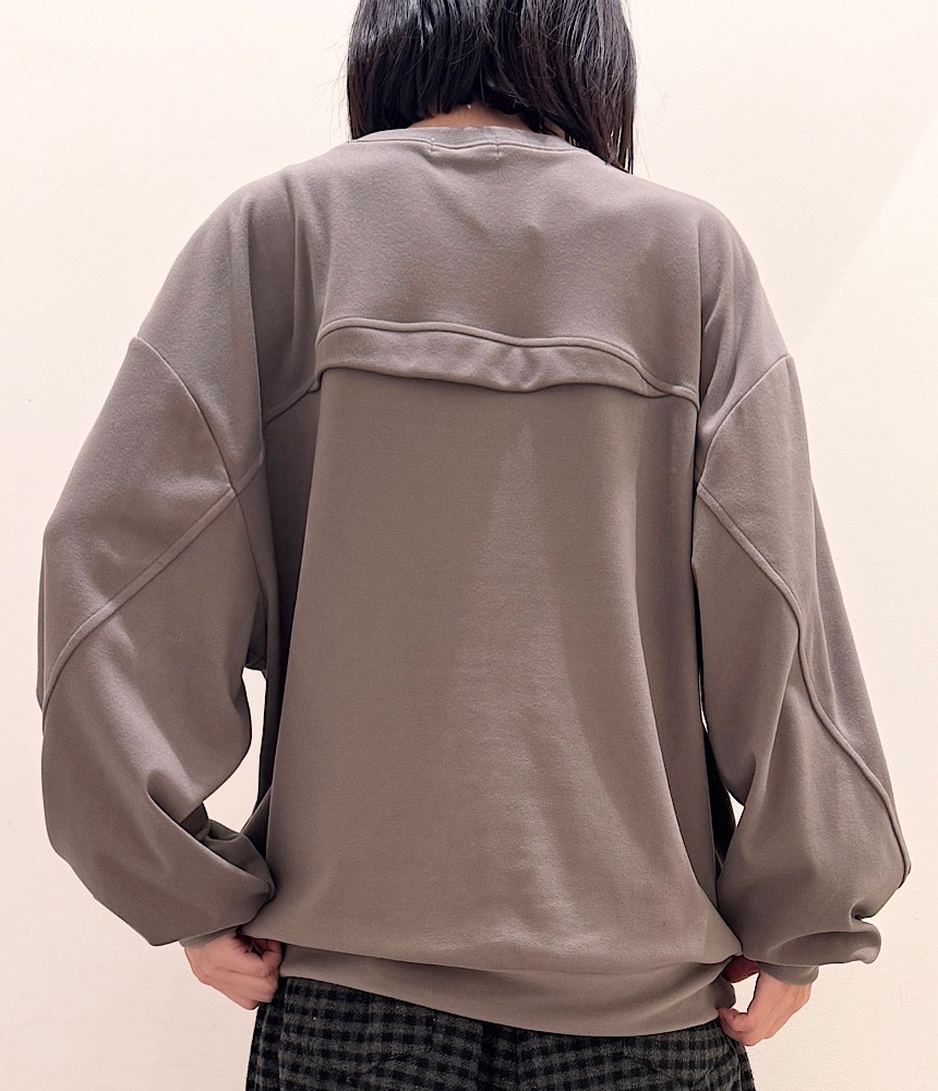 この冬人気のフリースのような素材を使った切り替えのデザインが入ったカットソー。