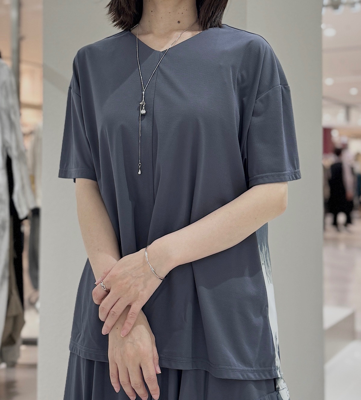 前から見るとシンプルなVネックのカットソー。バックスタイルがポイント。