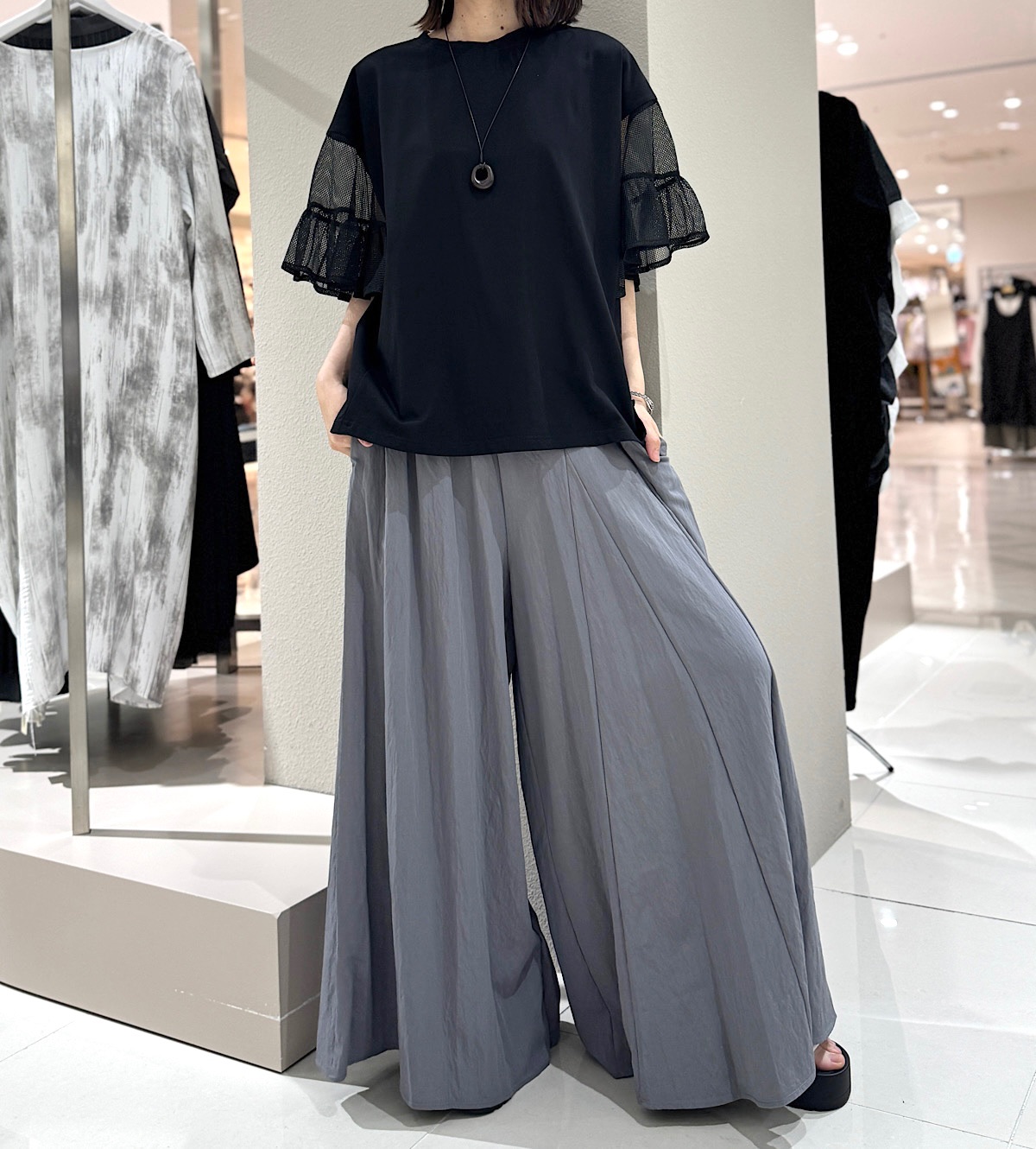 左右の太さ(デザイン)が異なるアシンメトリーなワイドパンツ。