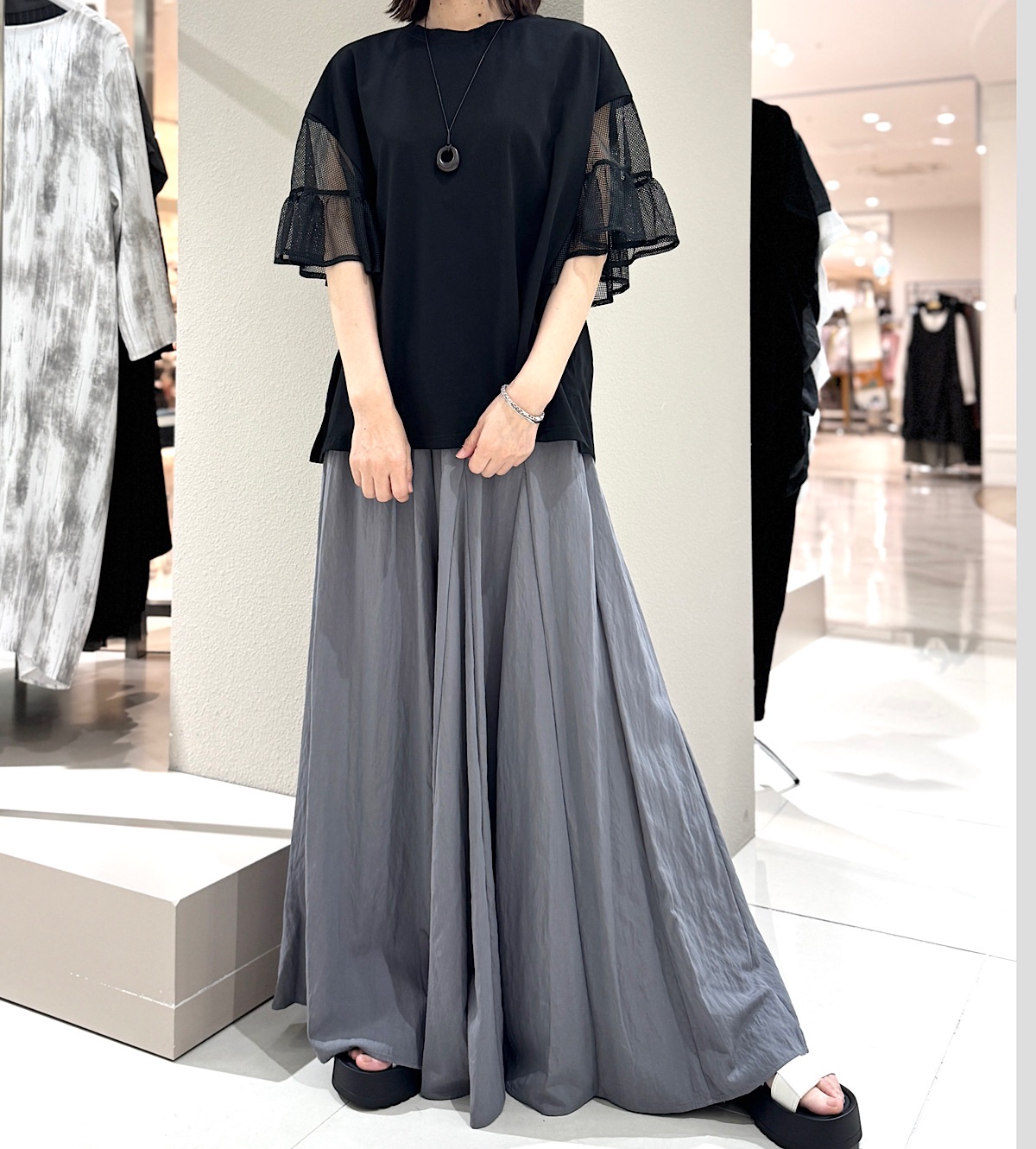 やや丈が長いので、160cm以下の身長の方は厚底のサンダルやスニーカーなどを合わせると◎