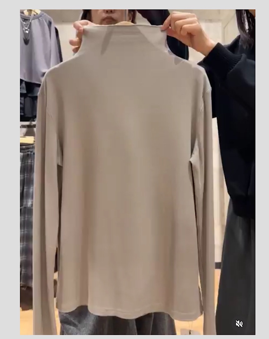 首周りは詰まりすぎず、柔らかいフィット感のボトルネック。タートルネックが苦手な方も安心して着ていただけます。